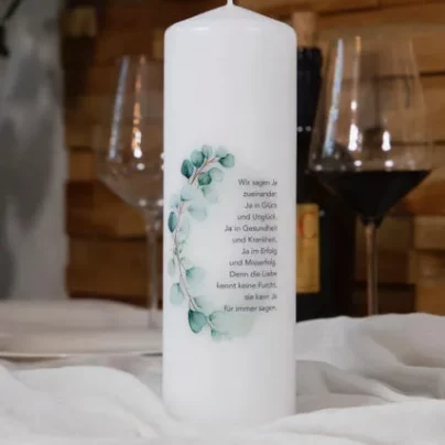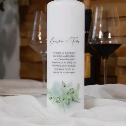 Greenery Eukalyptus Hochzeitskerze Traukerze individuell personalisiert