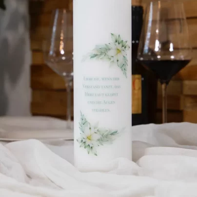 Greenery weiße Blüte Hochzeitskerze Traukerze individuell personalisiert