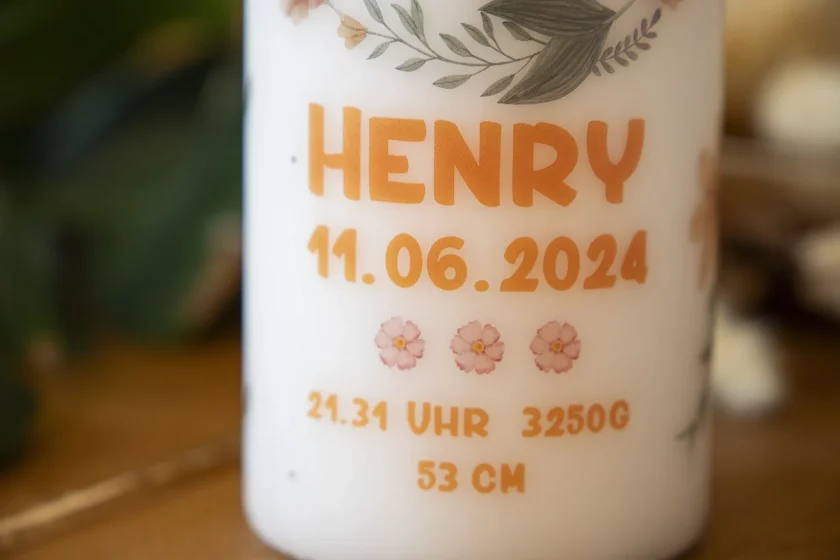 Das 360-Grad-Design zeigt eine niedliche Giraffe, die von blühenden Blumen und zarten Blättern umgeben ist. Diese Kerze symbolisiert das Wachstum, die Schönheit und die blühende Zukunft, die vor dem neugeborenen Kind liegt. Die “Giraffe Floral 360°” Geburtskerze ist nicht nur ein wunderschönes Dekorationselement, sondern auch ein wertvolles Erinnerungsstück, das die Freude über die Geburt für immer festhält.