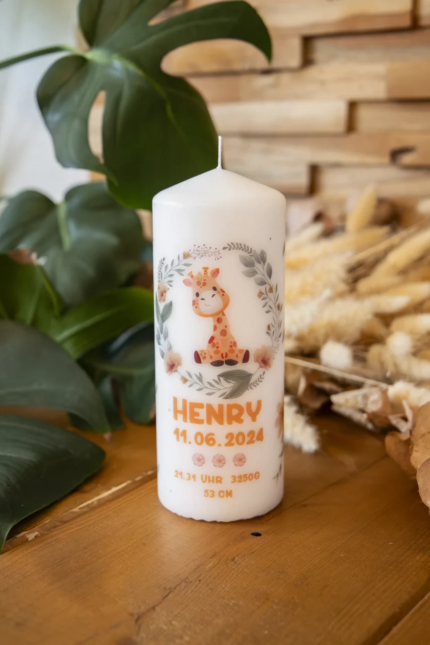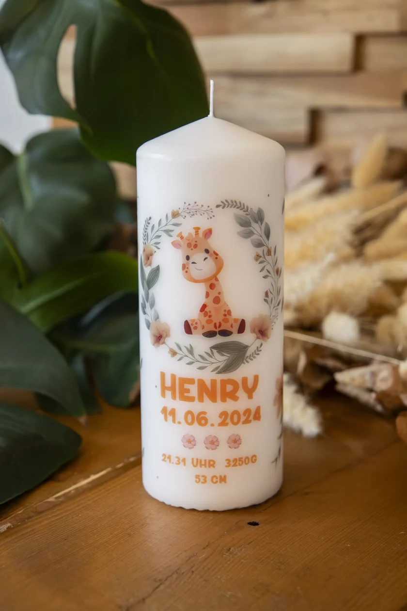 Schreib die erste Bewertung für “Giraffe Geburtskerze individuell personalisiert”