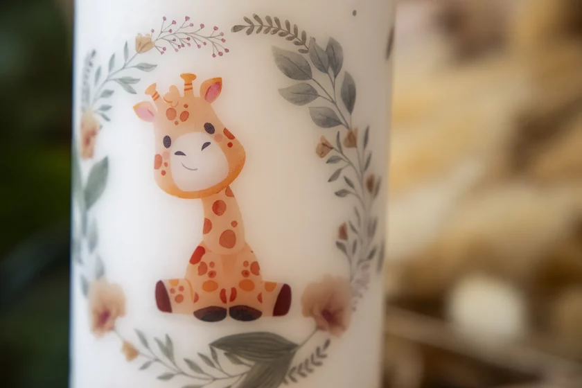 Feiern Sie die Ankunft eines neuen Lebens mit unserer “Giraffe Floral 360°” Geburtskerze, die durch ihr liebevolles und einzigartiges Design besticht. Diese besondere Kerze ist rundum mit einem bezaubernden Giraffenmotiv umgeben, das in einem floralen Stil gehalten ist und in sanften, harmonischen Farben erstrahlt. Sie ist das perfekte Geschenk zur Geburt und bringt Freude und Wärme in jedes Kinderzimmer.