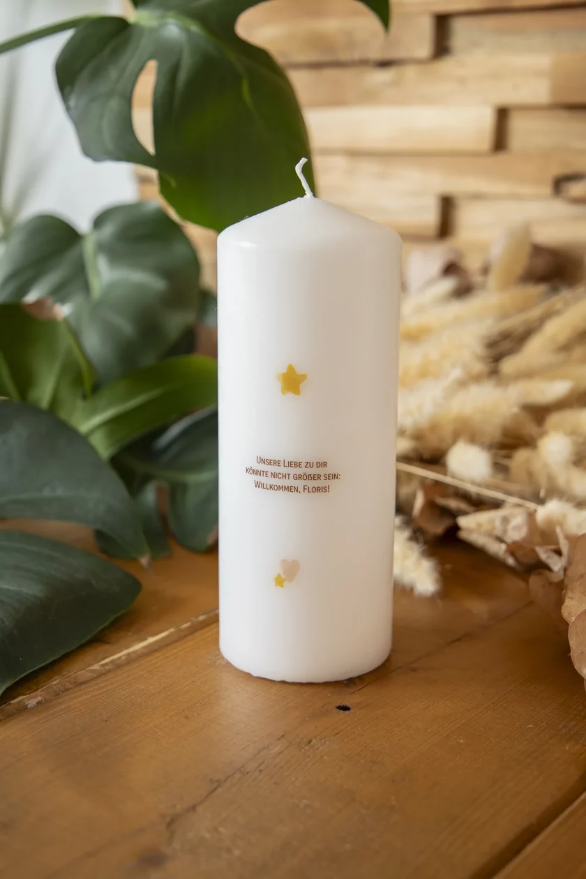 Schreib die erste Bewertung für “Sterne Herz Geburtskerze individuell personalisiert”