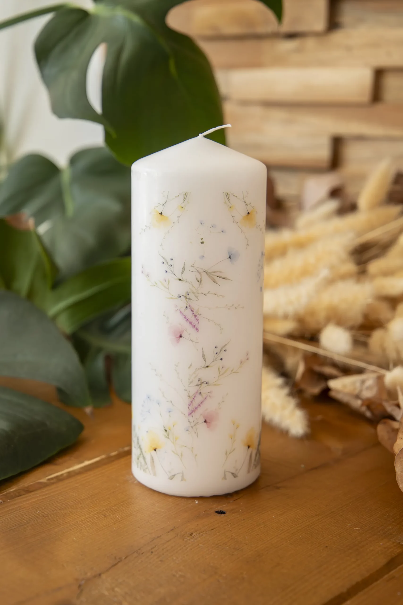 Verleihen Sie Ihrer Hochzeit einen Hauch von künstlerischer Eleganz mit unserer “Aquarell 360°” Hochzeitskerze. Diese wunderschöne Kerze ist rundum mit einem zarten Aquarellmotiv in sanften Farben verziert, das die Romantik und die Magie Ihres besonderen Tages einfängt. Die fließenden Farben und das weiche, harmonische Design machen diese Kerze zu einem perfekten Highlight für Ihre Hochzeitszeremonie oder -feier.