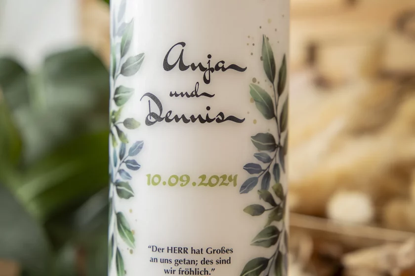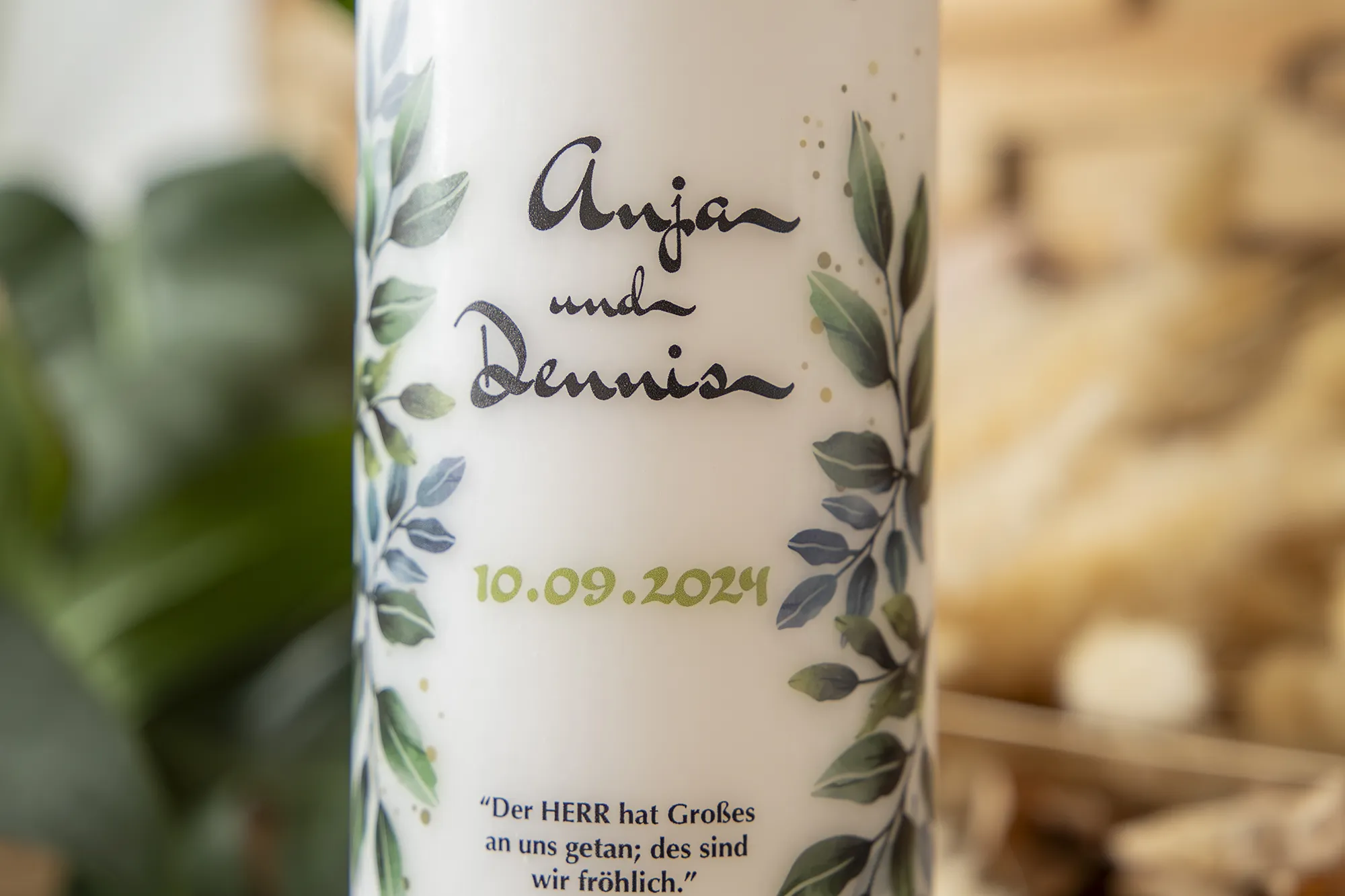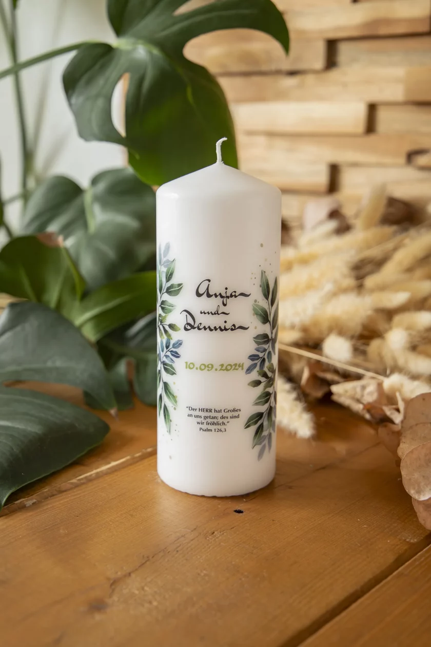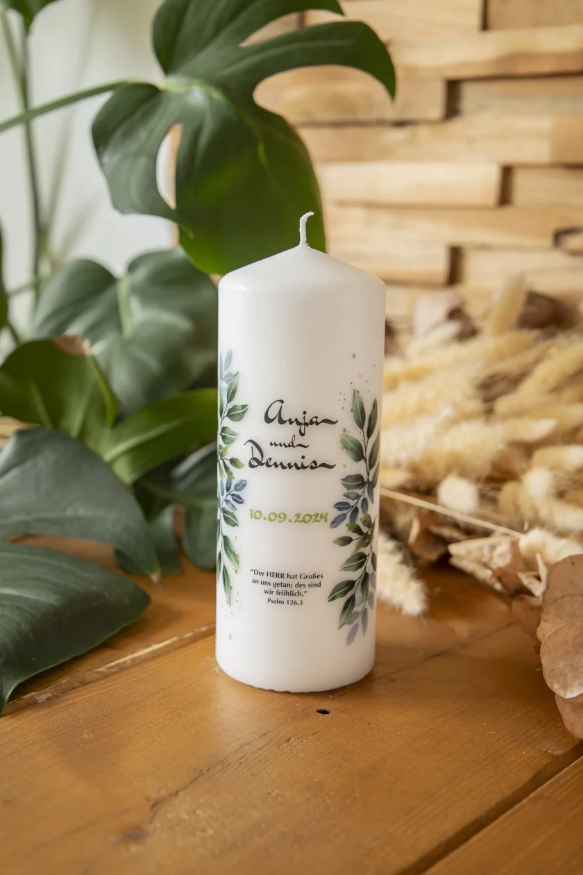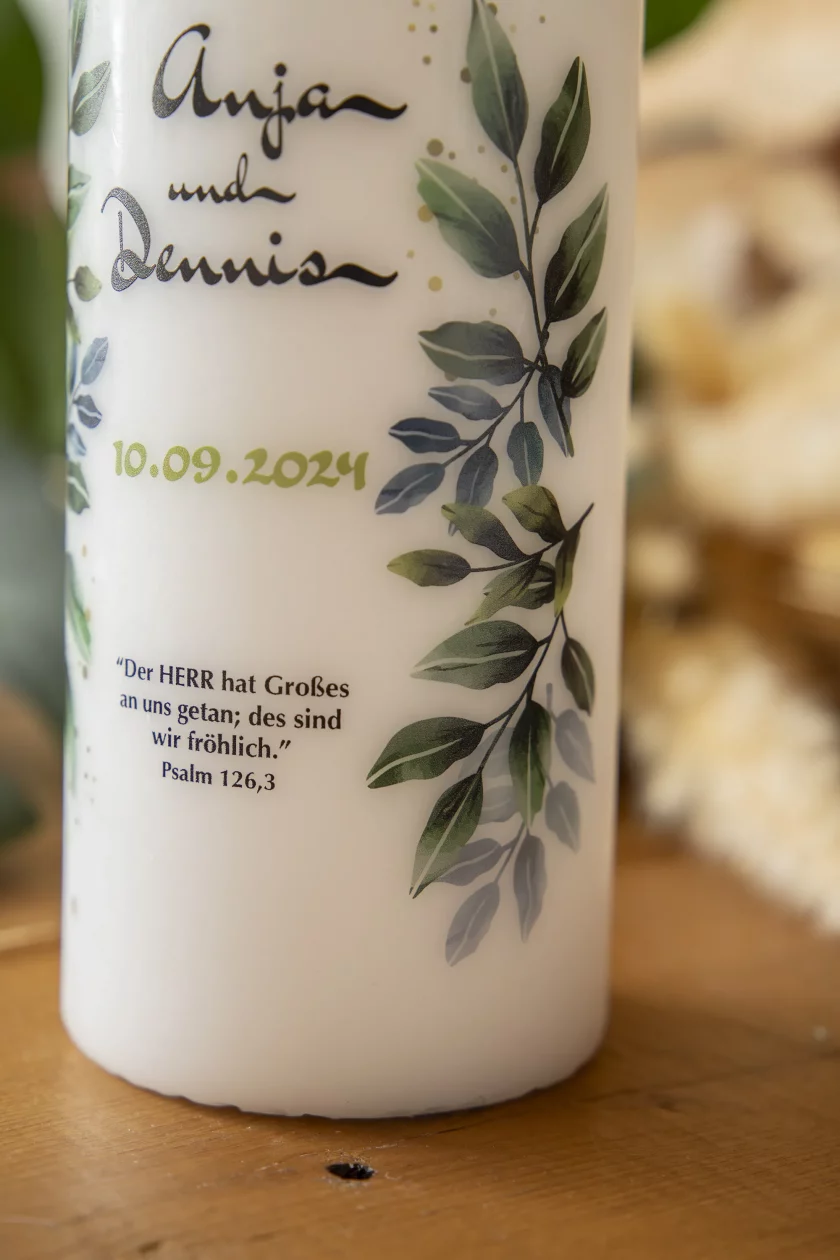 Blätter Hochzeitskerze Traukerze individuell personalisiert