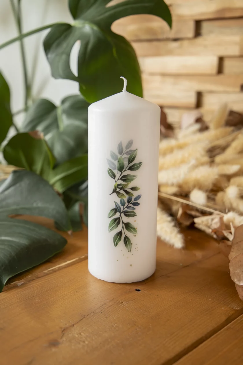 Verleihen Sie Ihrer Hochzeit einen Hauch von natürlicher Eleganz mit unserer “Blätter Floral” Hochzeitskerze. Diese wunderschön gestaltete Kerze kombiniert zarte Blätter- und florale Motive, die eine harmonische und romantische Atmosphäre schaffen. Ideal für Paare, die eine Verbindung zur Natur betonen möchten, bringt diese Kerze eine frische, organische Note in Ihre Hochzeitsdekoration.