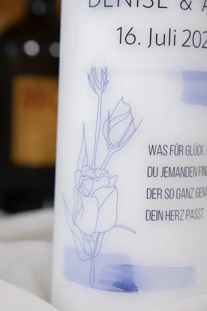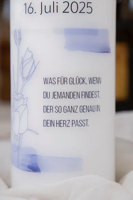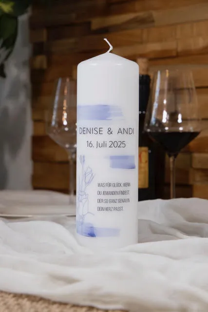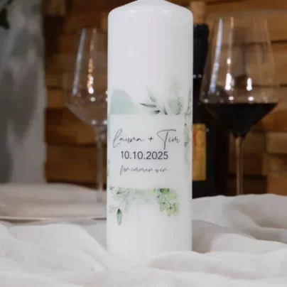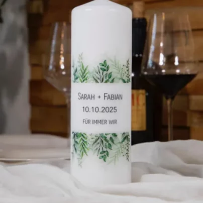 Dank der individuellen Personalisierung mit Namen, Hochzeitsdatum oder einer persönlichen Botschaft wird jede Kerze zu einem einzigartigen Erinnerungsstück. Hergestellt aus hochwertigem Wachs, sorgt sie für eine festliche Atmosphäre und bleibt als liebevolles Andenken an den schönsten Tag im Leben erhalten. Ideal als symbolische Traukerze, stilvolle Tischdekoration oder unvergessliches Hochzeitsgeschenk.