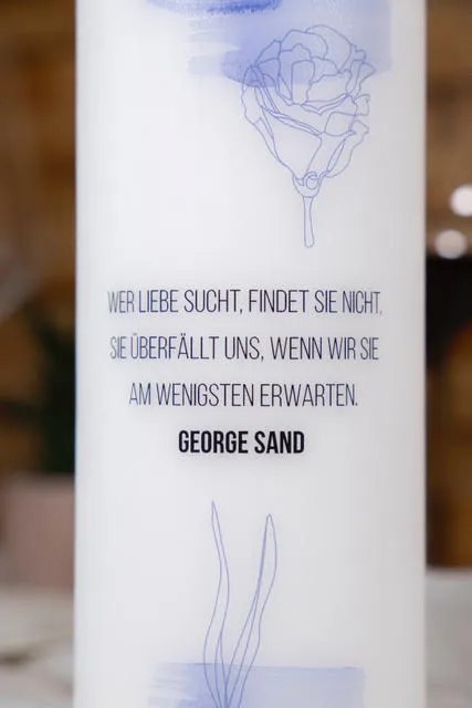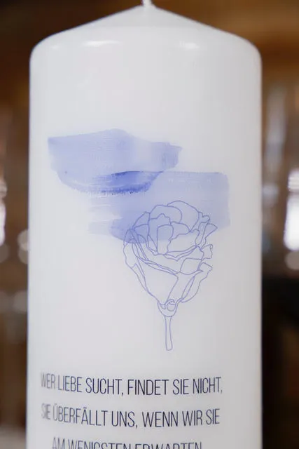 Unsere edle „Blaue Rose“ Hochzeitskerze vereint die symbolische Bedeutung der blauen Rose – Liebe, Treue und Einzigartigkeit – mit stilvollem Design. Die zarten Rosenmotive in sanften Blautönen verleihen jeder Hochzeitszeremonie eine besondere Eleganz.