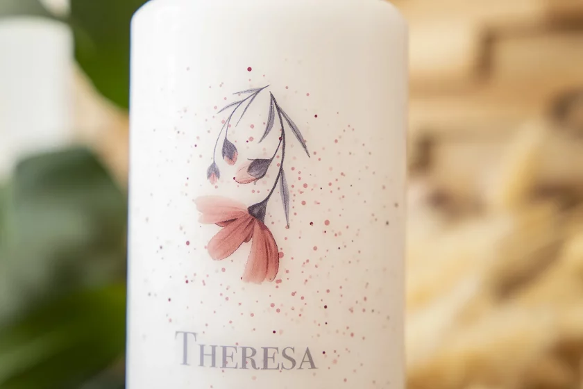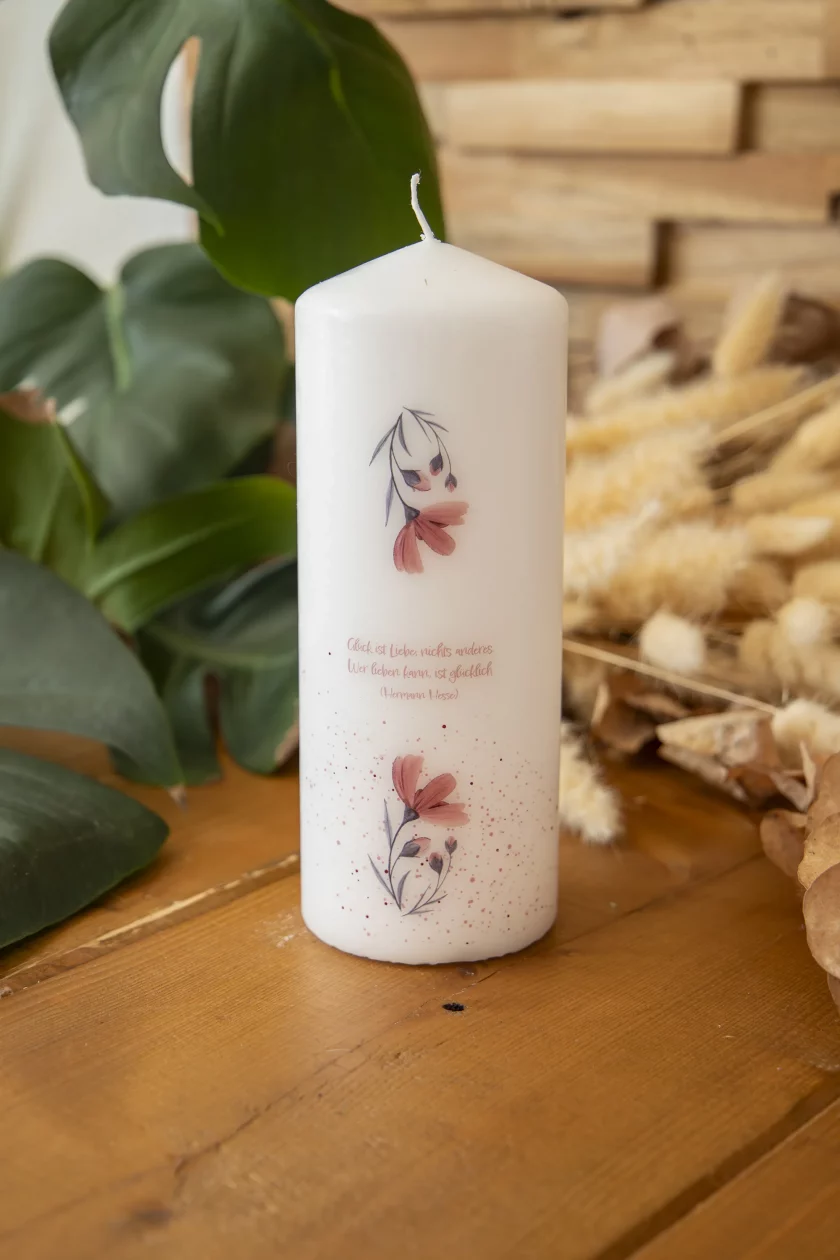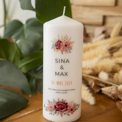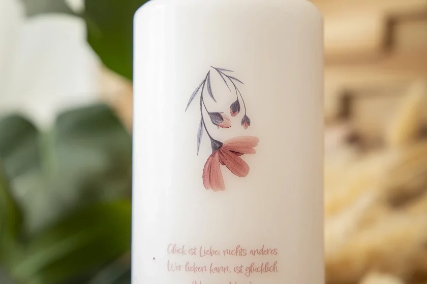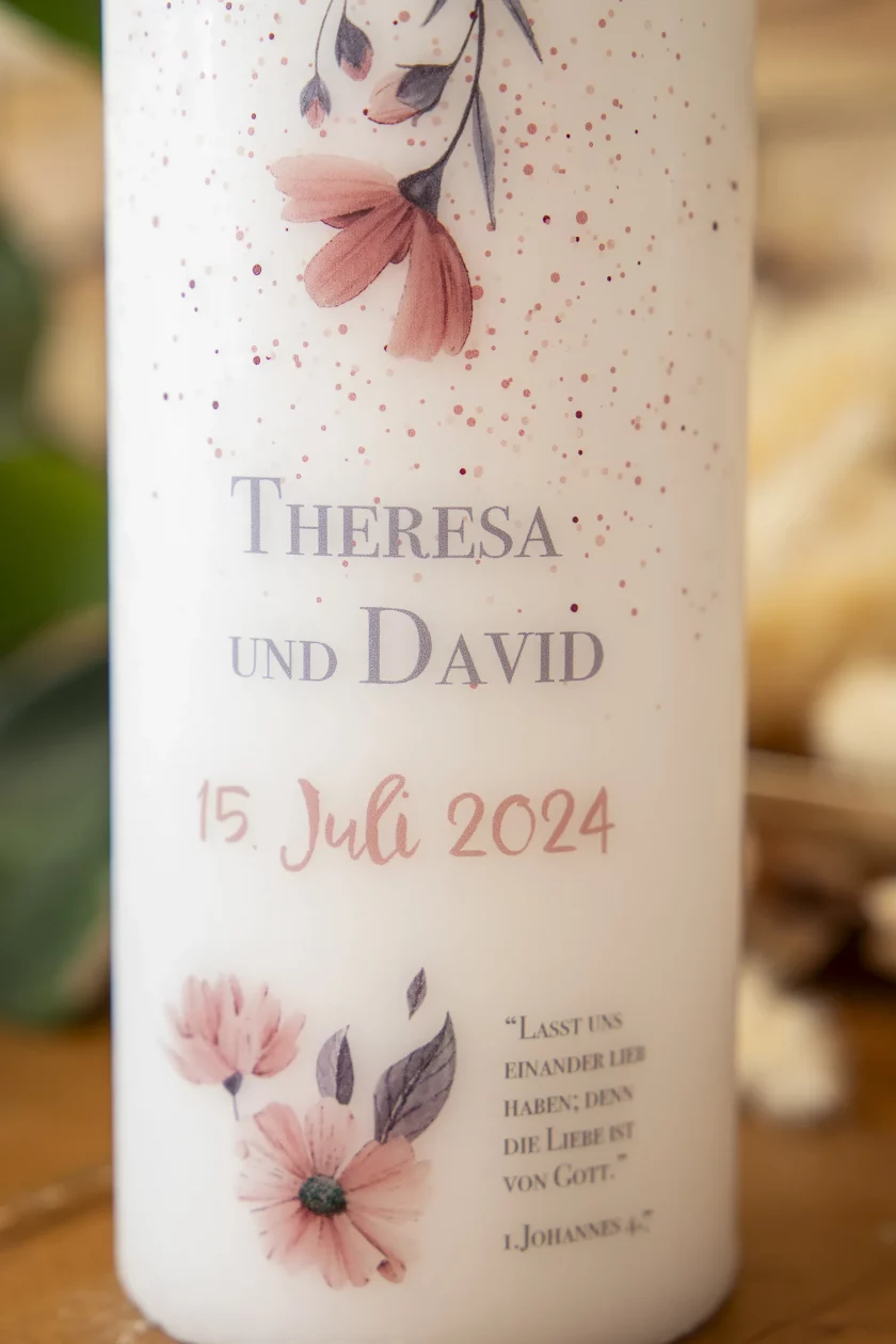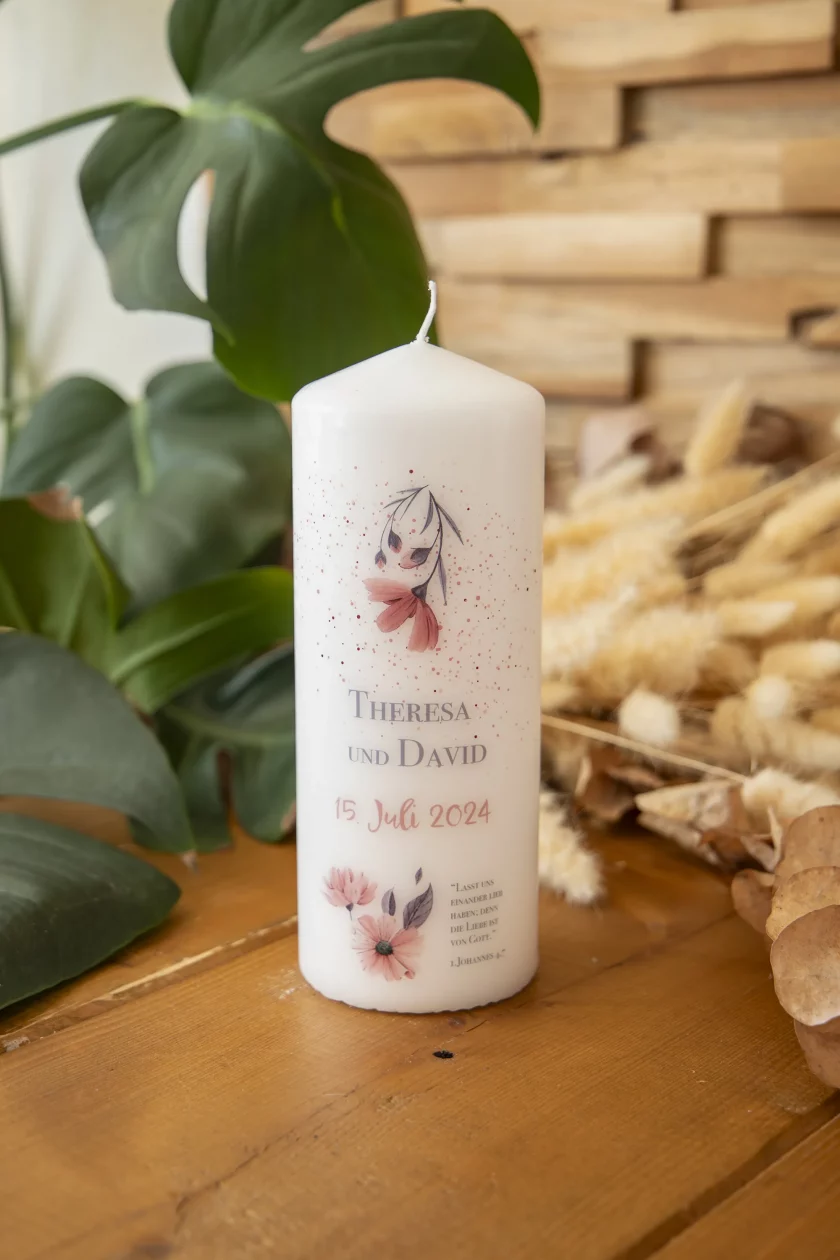 Setzen Sie bei Ihrer Hochzeit auf Eleganz und Raffinesse mit unserer “Floral Punkte” Hochzeitskerze. Diese wunderschöne Kerze kombiniert ein zartes Blumendesign mit einem modernen Punktmuster, das sich perfekt in eine zeitgemäße Hochzeitsdekoration einfügt. Die Mischung aus floralen Elementen und dezenten Punkten verleiht dieser Kerze einen besonderen Charme und macht sie zu einem stilvollen Highlight auf Ihrem Hochzeitstisch.