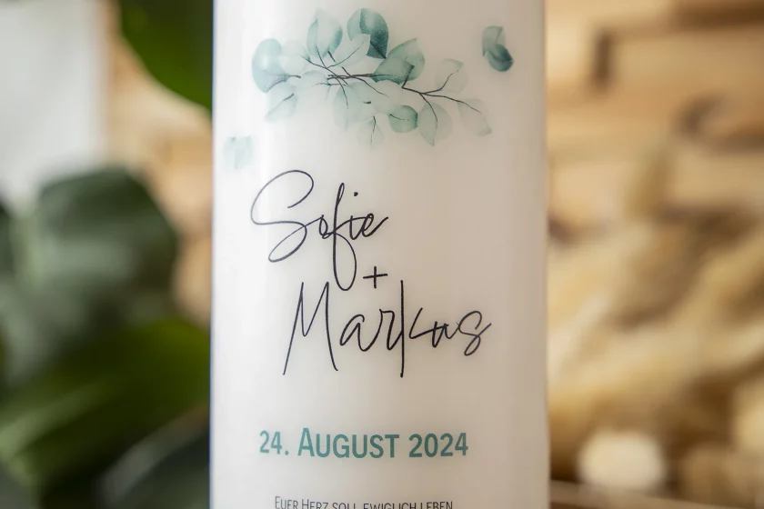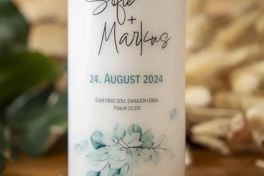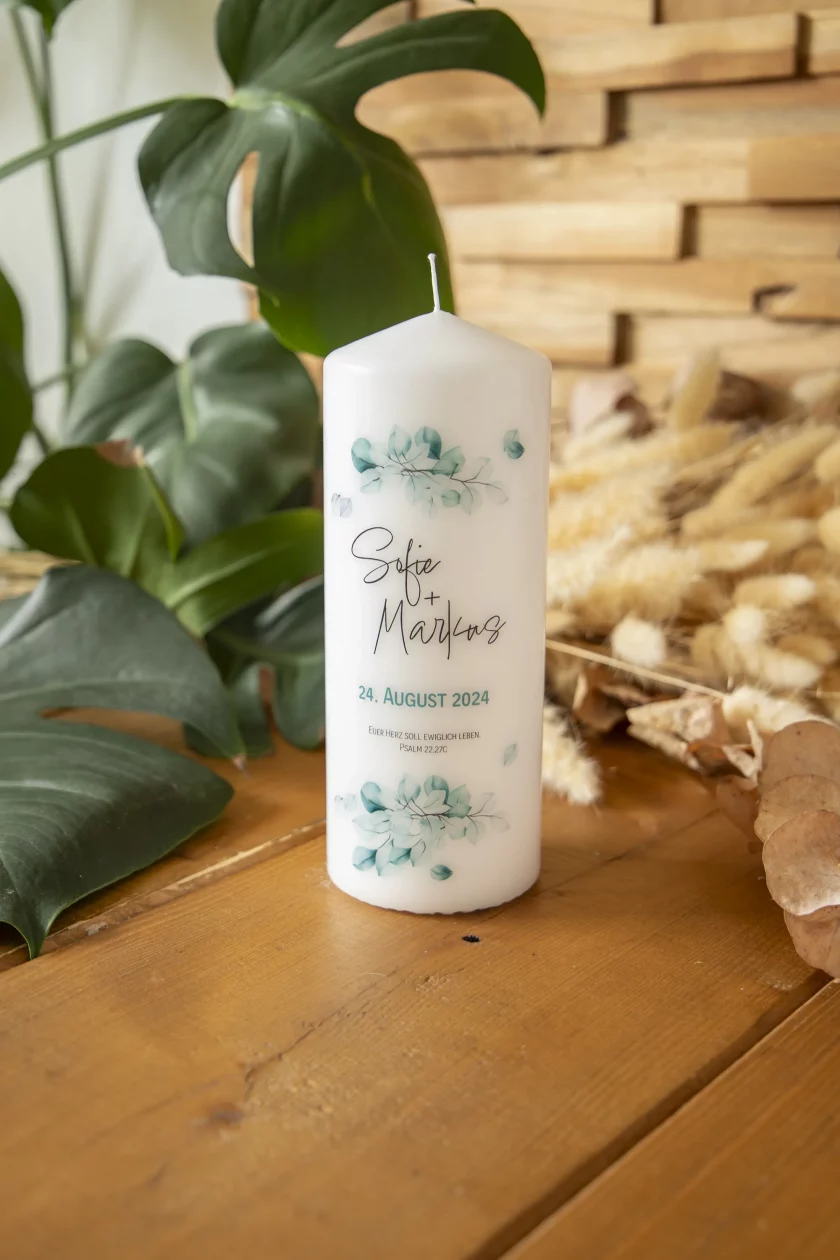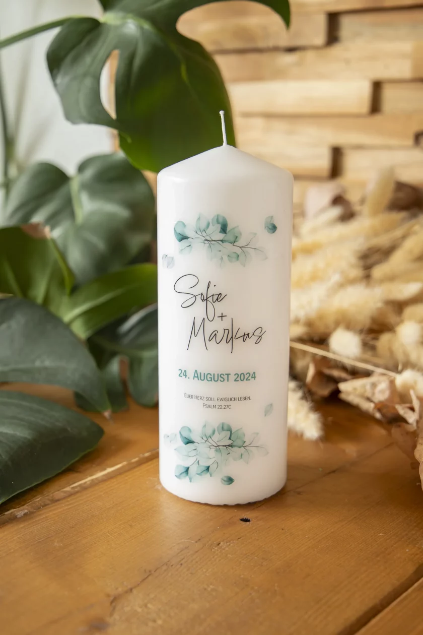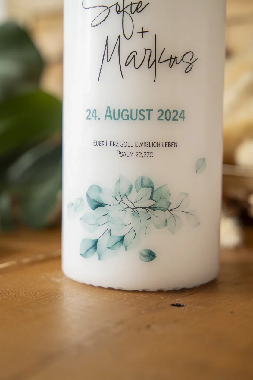 Green Leaf Hochzeitskerze Traukerze individuell personalisiert