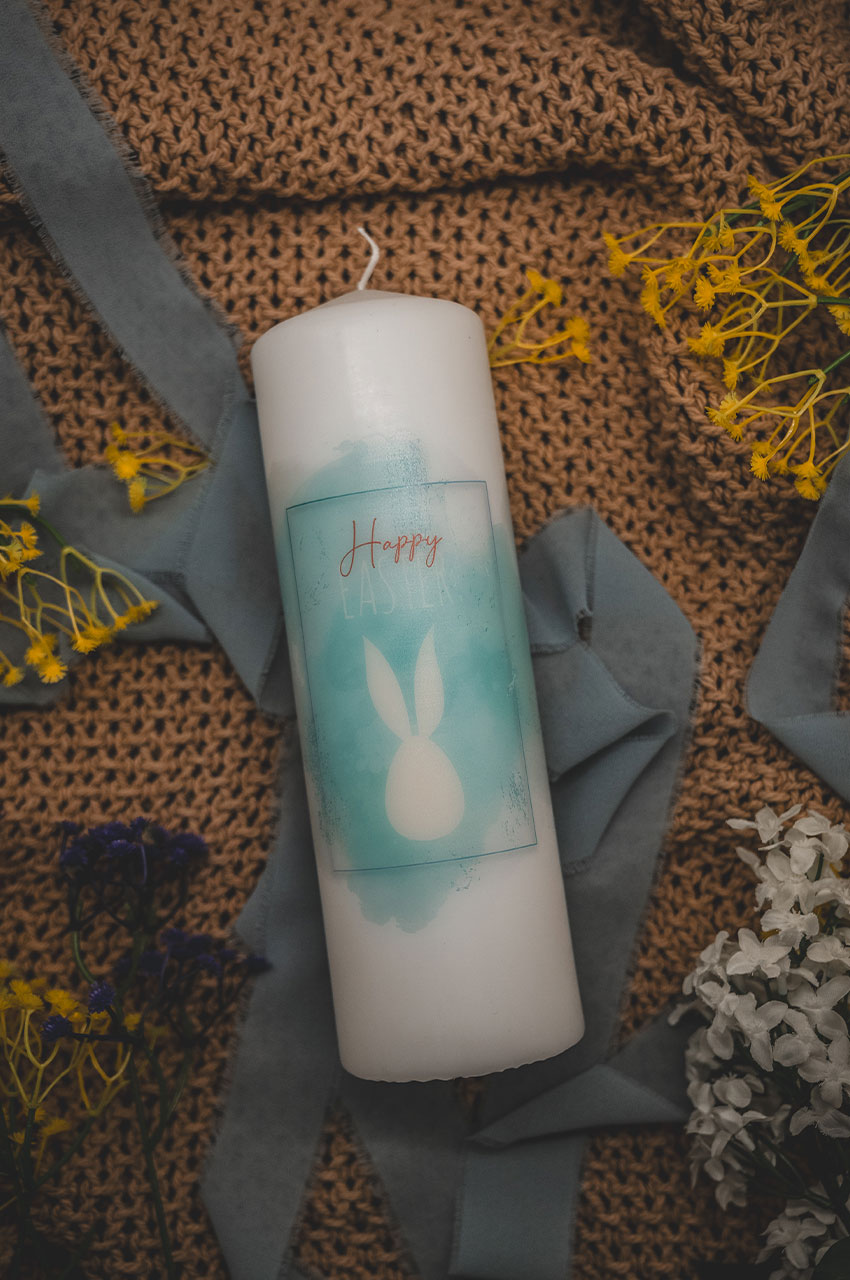 Unsere „Osterhase Aquarell Blau“ Osterkerze bringt frische Frühlingsstimmung in Ihr Zuhause. Das liebevoll gestaltete Hasenmotiv im sanften Aquarellstil und die zarten Blautöne wirken leicht, verspielt und sorgen sofort für eine fröhliche Osteratmosphäre. Umgeben von natürlichen Elementen passt die Kerze perfekt zu einer warmen, gemütlichen Dekoration.