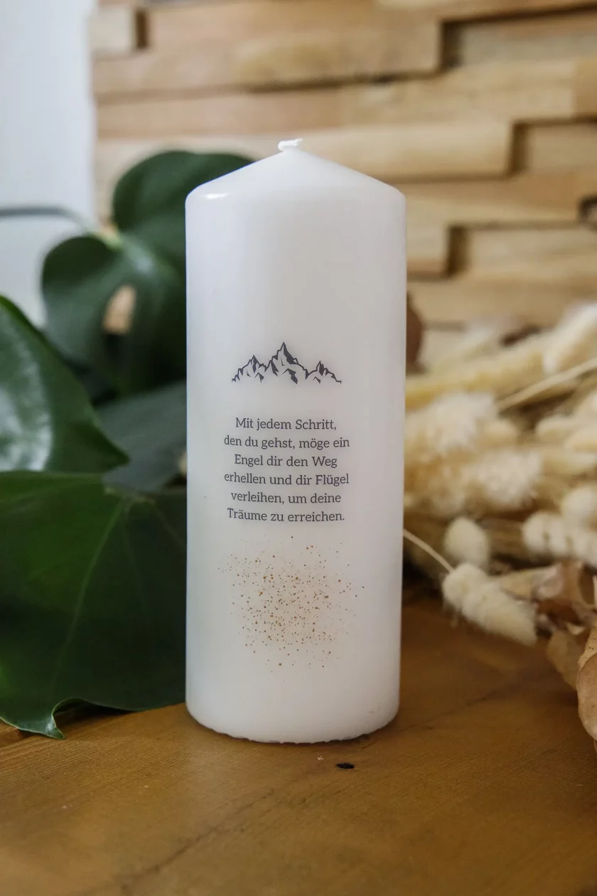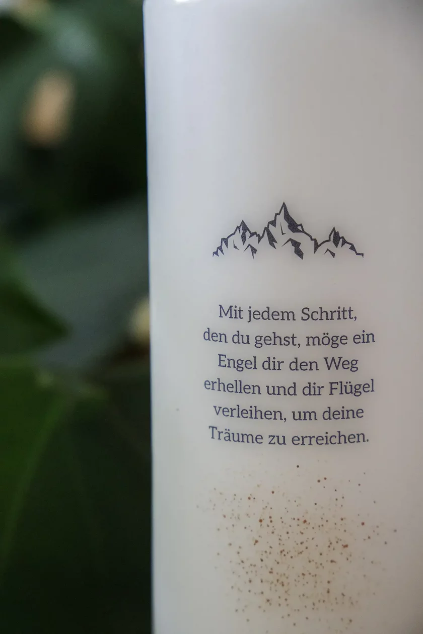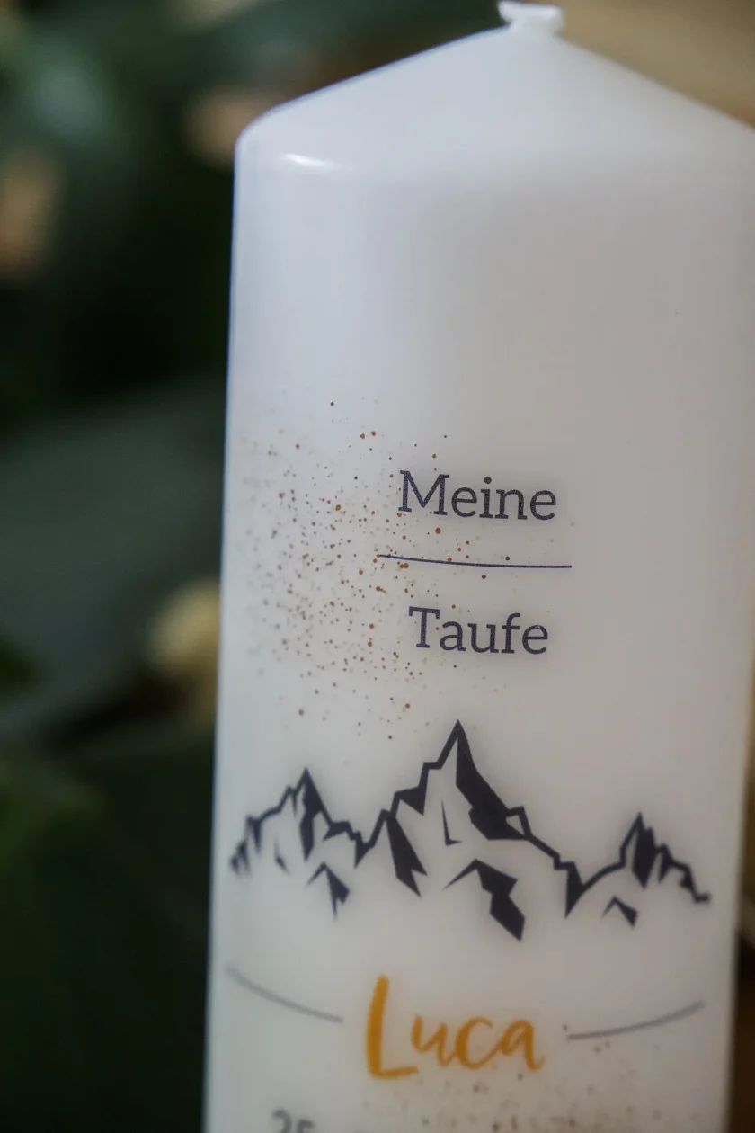 Die Taufe ist ein entscheidender Schritt auf dem Lebensweg eines Menschen, und unsere “Mountains” Taufkerze symbolisiert die Kraft und Beständigkeit, die diesen Weg begleiten sollen. Mit ihrem stilvollen Bergmotiv steht diese Kerze für die Stärke, die Hindernisse zu überwinden, und die Beständigkeit des Glaubens.