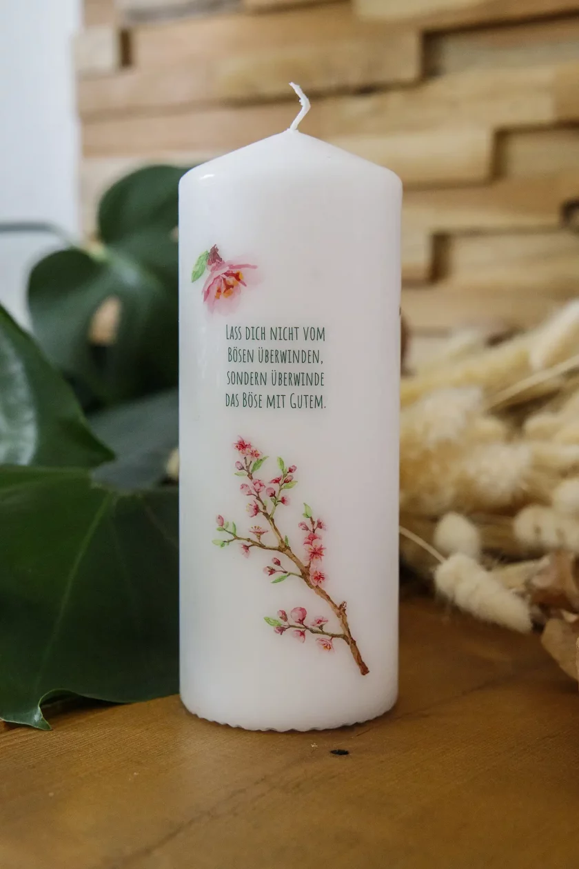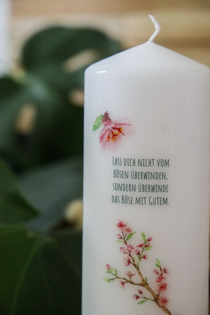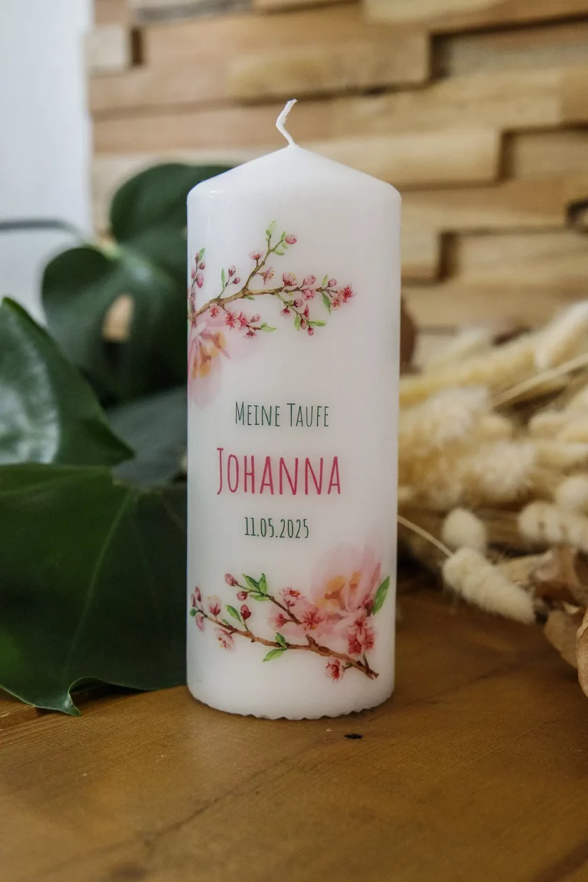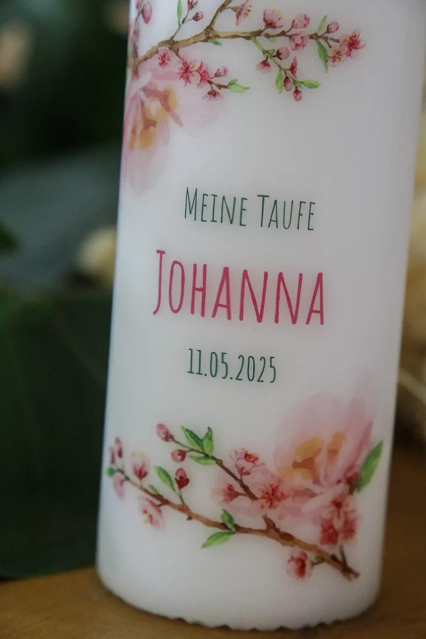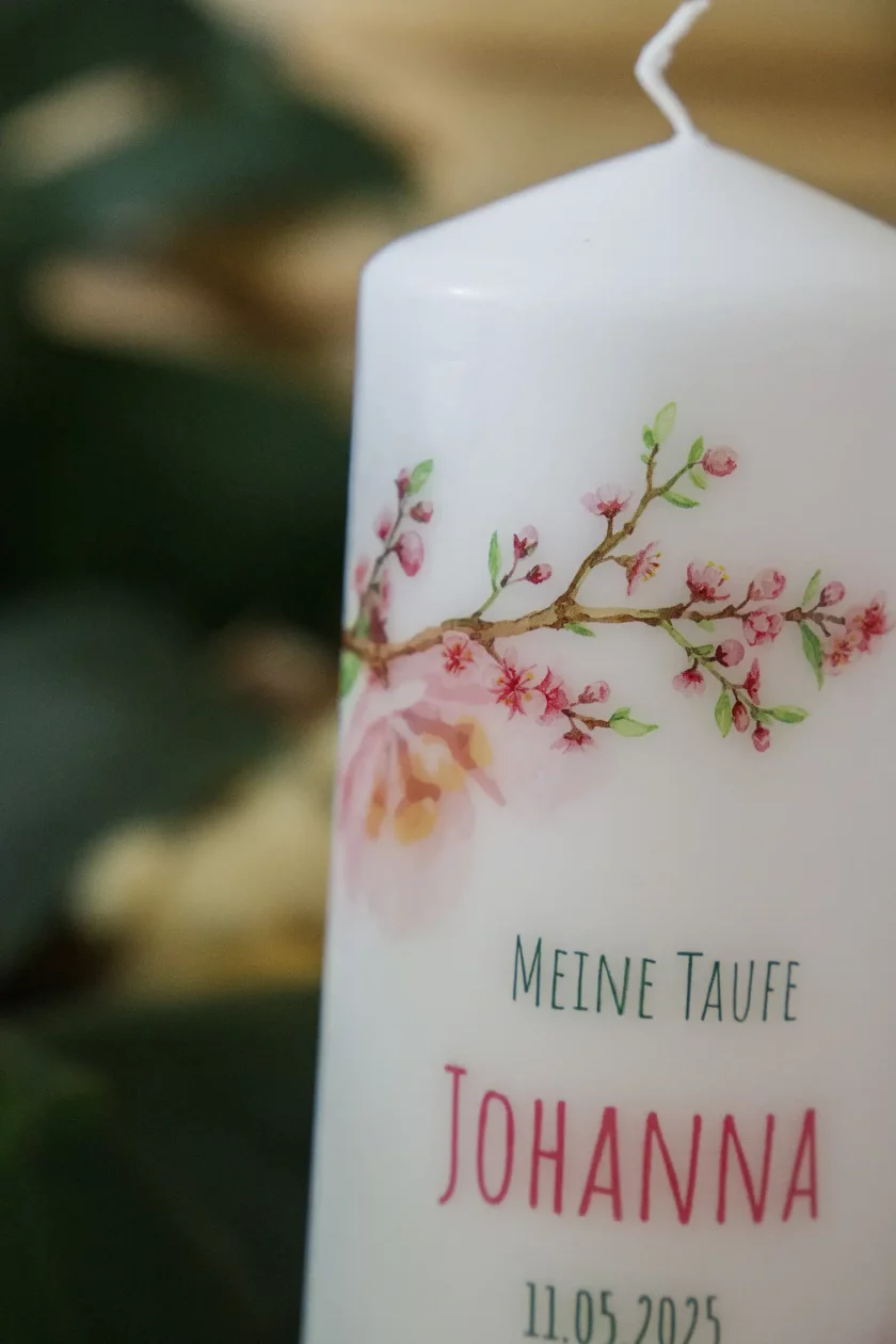 Unsere “Kirschblüte” Taufkerze verkörpert auf wunderschöne Weise die zarte Schönheit und den Neubeginn, den die Taufe symbolisiert. Die Kirschblüte, ein traditionelles Symbol für Reinheit, Wachstum und Erneuerung, steht im Mittelpunkt dieser exquisiten Taufkerze und macht sie zu einem perfekten Begleiter für diesen bedeutenden Lebensabschnitt.